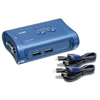 The 2-Port USB KVM Switch lets you manage two PC's with just one set of keyboard, monitor, and mouse. Switch between two PC's with a simple press of a button! Separate sets of KVM cables are included with the KVM Switch, so users can start controlling 2 PC's instantly. The KVM cables also provide power to the KVM Switch, eliminating the need for a power adapter. Hot Key operations provide immediate access to features such as computer switching, and auto-scanning. With its Hot-Plug, and Audible Feedback, the 2-Port USB KVM Switch is the perfect choice for managing multiple PC's.